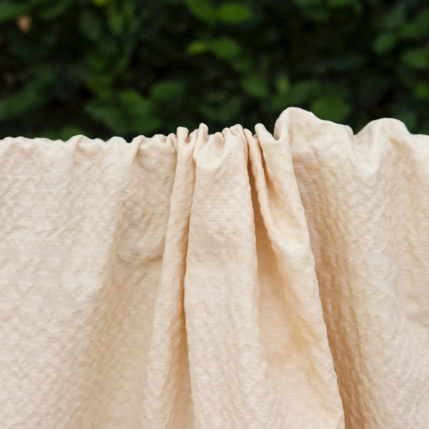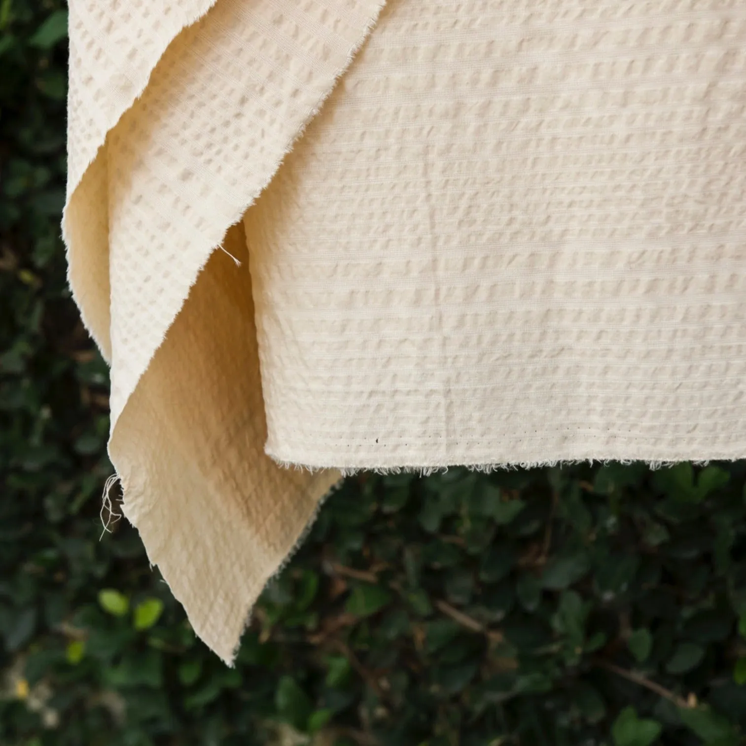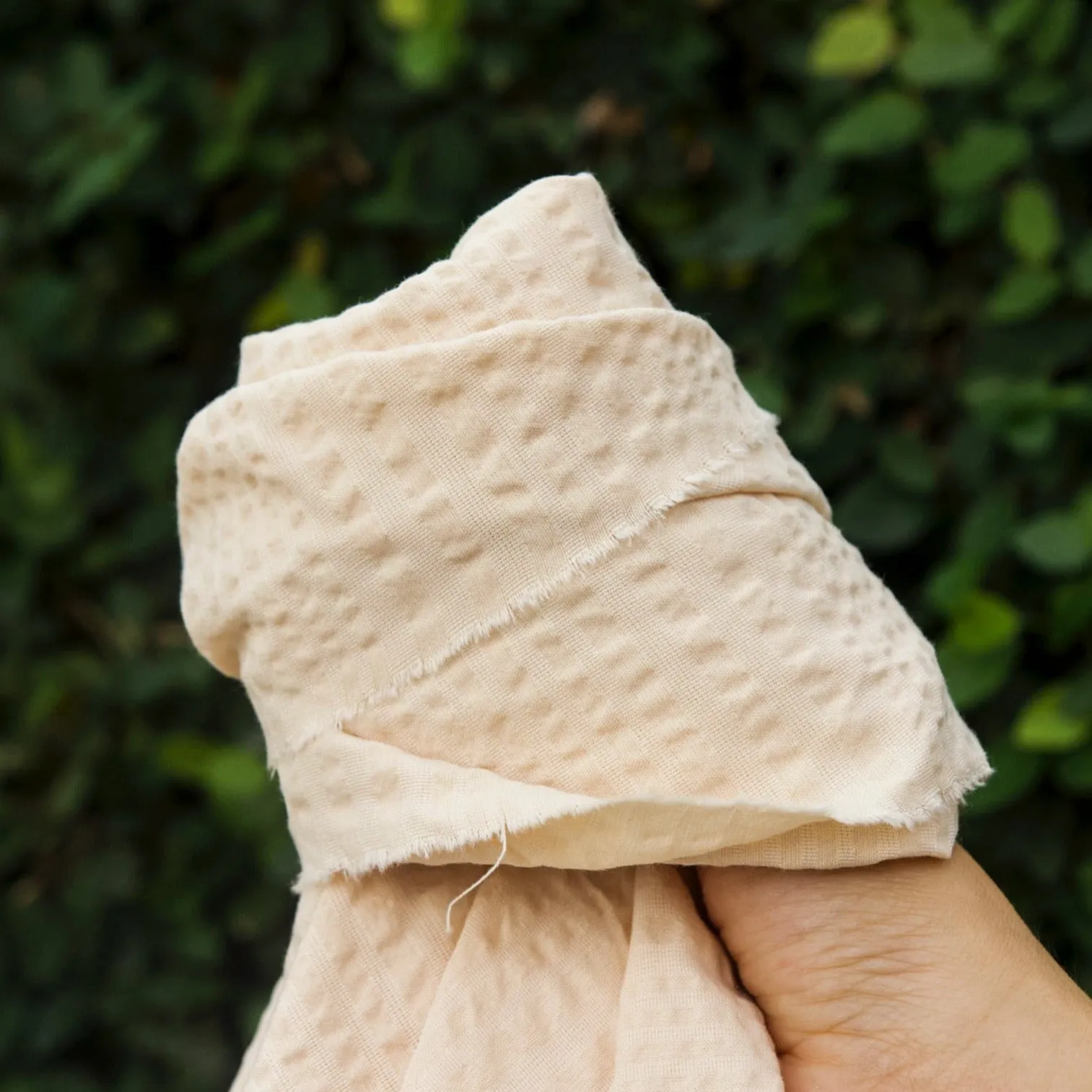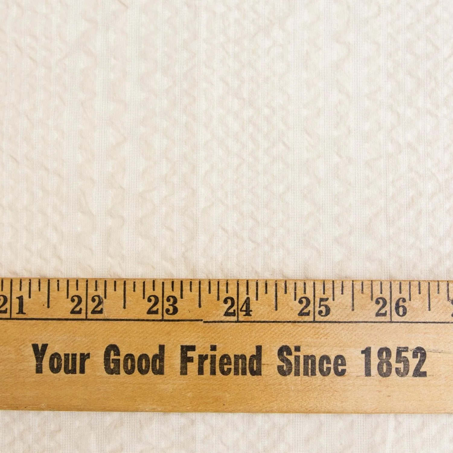 Get ready for an all-year-round Seersucker Ivory Cluster Striped Cotton Seersucker! Puckered vintage Ivory stripes are spaced in varying thicknesses. In cotton, this seersucker is easy to care for; while the bubbled texture keeps you feeling fresh, the structure keeps you up to date. With a crisp drape, create button-down shirts ideal for a day at the lake or dream-up dresses and skirts! Mostly opaque, a lining won’t be necessary for majority of projects.