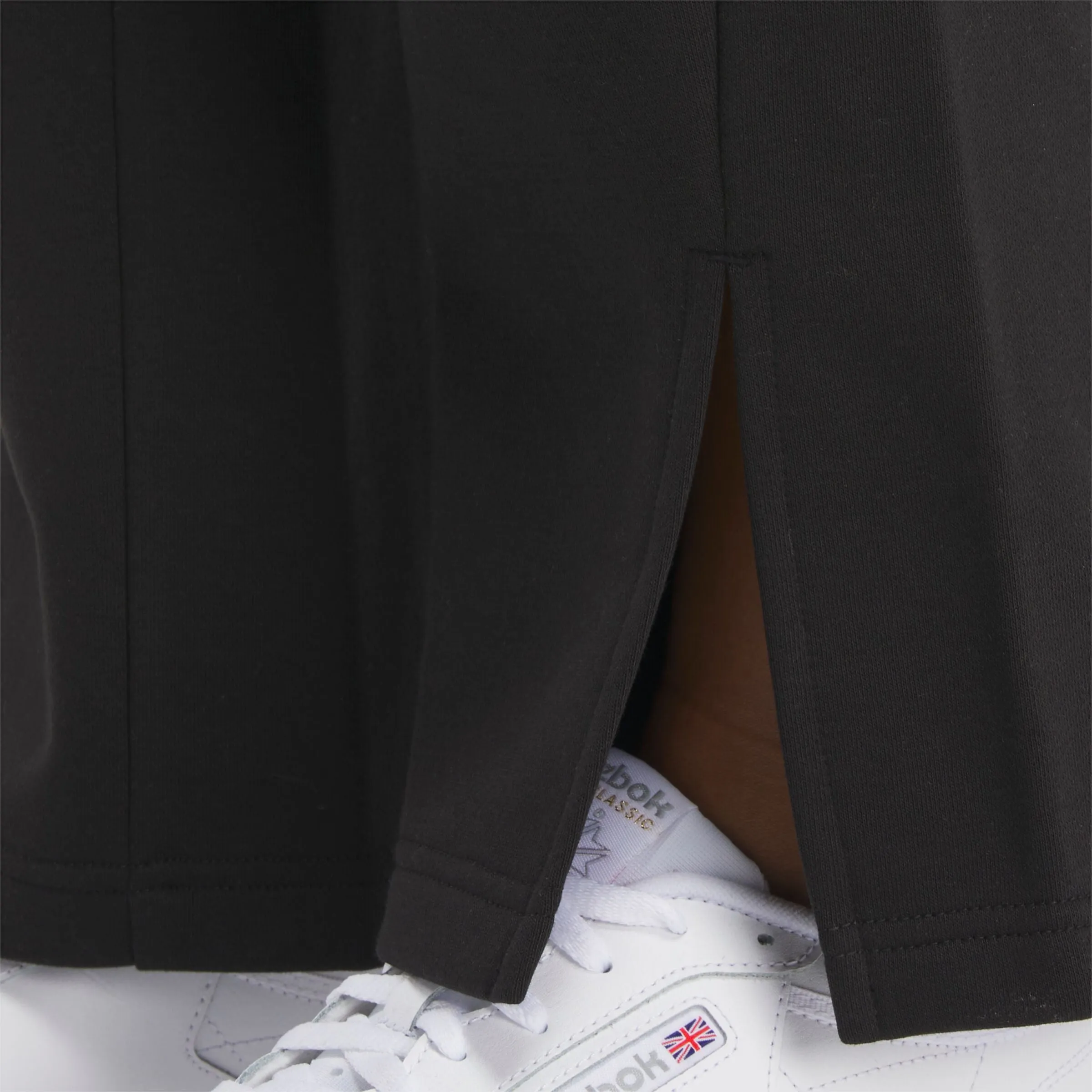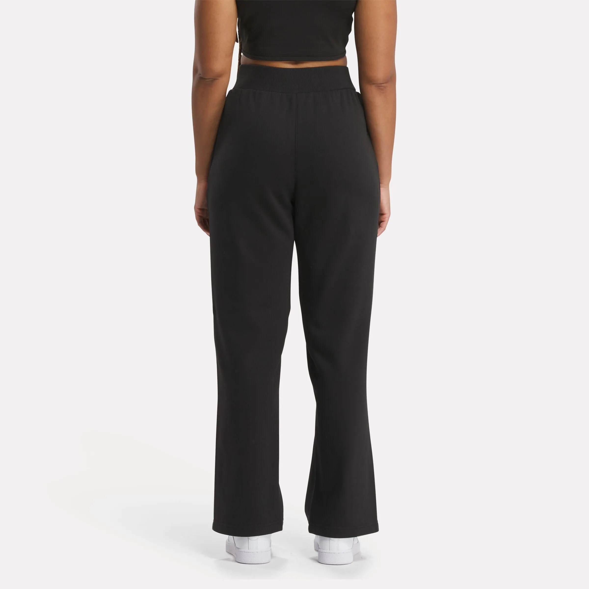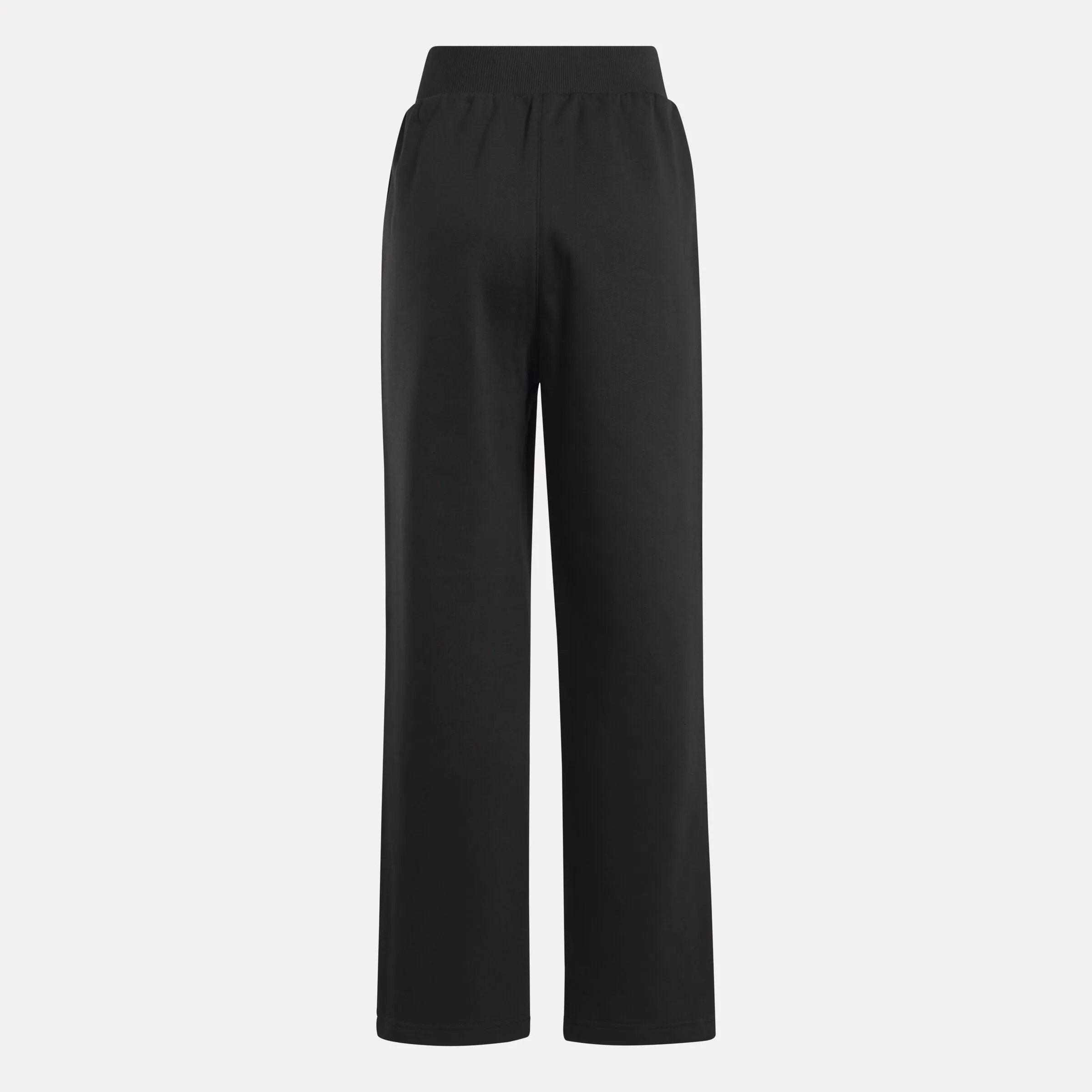 When modern style meets go-to comfort, you know you have to have it. These women's Reebok pants combine a flattering wide-leg silhouette with a fleecy soft fabric. Side slits on the leg create the perfect drape, and a high-rise elastic waist gives you confident coverage whether paired with a crop tee or a tucked-in tank top.