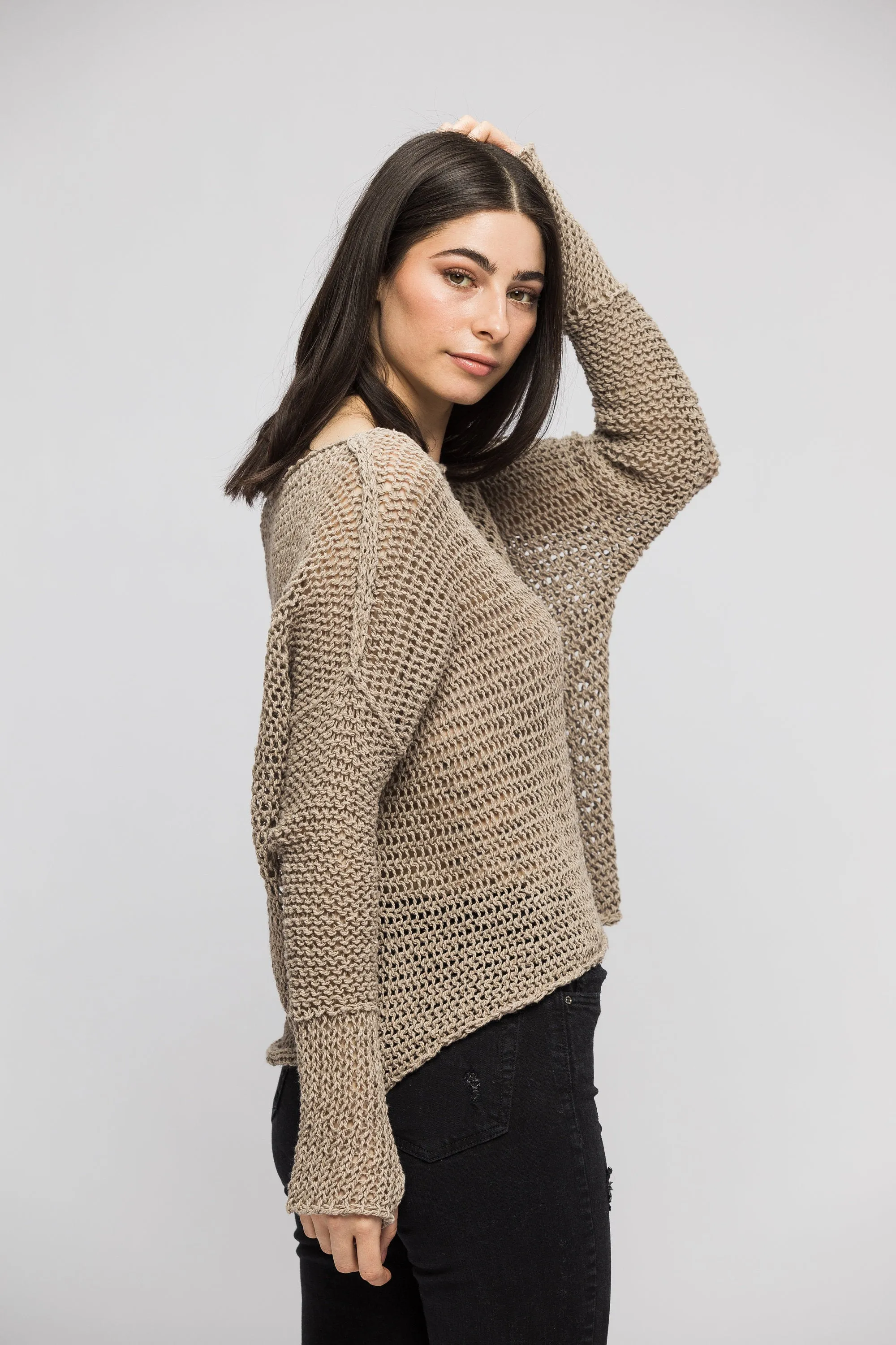 Cotton Linen Oversized Loose knit woman sweater. Relaxed fit , dropped shoulders.