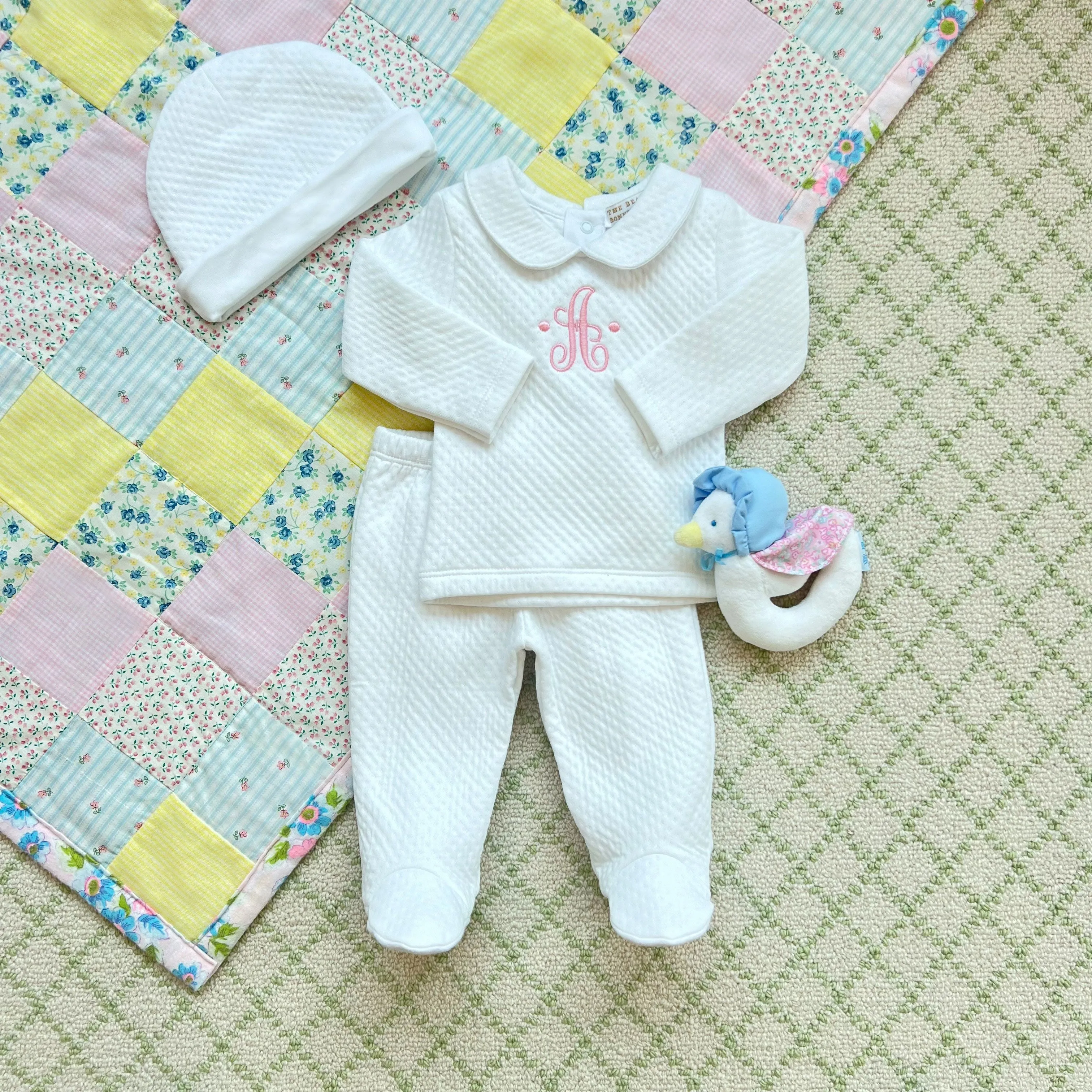 If you were looking for an excuse to hold your sweet baby a little closer, our Hart's Hold Me Set is just for you! From the sweet set itself to the adorable hat, to the darling pima jacquard fabric, every stitch of this set is perfect for snuggling!